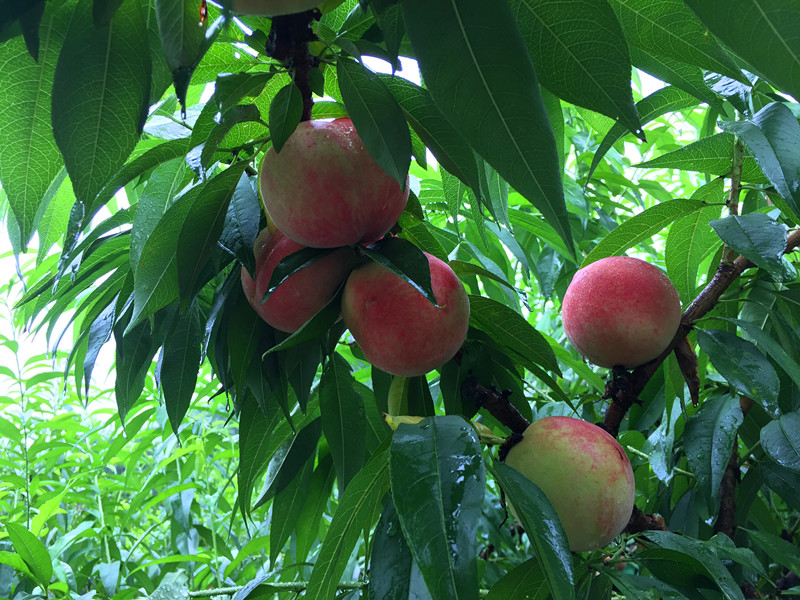桃園郁郁蔥蔥,紅彤彤的桃子在翠色中若隱若現(xiàn)。一進桃園,人們迫不及待鉆進樹林中,摘下桃子便吃。削開果皮,濃濃的桃香溢入鼻中,一口咬下去,綿軟香甜的桃肉充盈在每個味蕾上,感覺甜到了心底。在學會識別好吃的桃子后,大家又不斷摸索進桃園最深處,去尋找尚未被發(fā)現(xiàn)的甜蜜。一群人邊摘邊吃,邊說邊笑,其樂無窮。