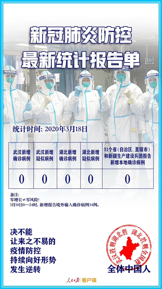 2020年3月19號(hào)。自國內(nèi)發(fā)生新冠病毒以來,第一次全國無新增病例。為了這一天的到來,是我們大家共同努力的成果。