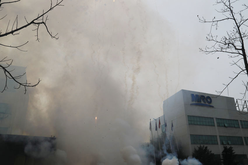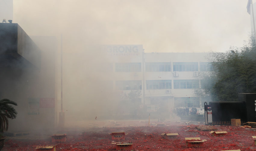 茗熔電器用傳統(tǒng)的方式-放鞭炮來表達(dá)對(duì)今天的到來的歡喜之情。