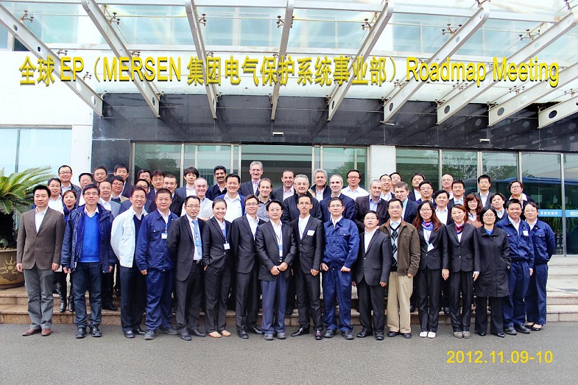美爾森集團公司于2012年11月9-10日在樂清工廠(茗熔電器)舉辦全球EP(MERSEN集團電器保護系統(tǒng)事業(yè)部)商務研討會。屆時Marc Vinet 、Yann、Alex 等Mersen(美爾森)集團全球EP事業(yè)部50多位總裁級、總經(jīng)理及高管參會。此次商務研討會議重在商討中國區(qū)電氣事業(yè)部各部門的發(fā)展情況與制定日后發(fā)展的戰(zhàn)略目標。