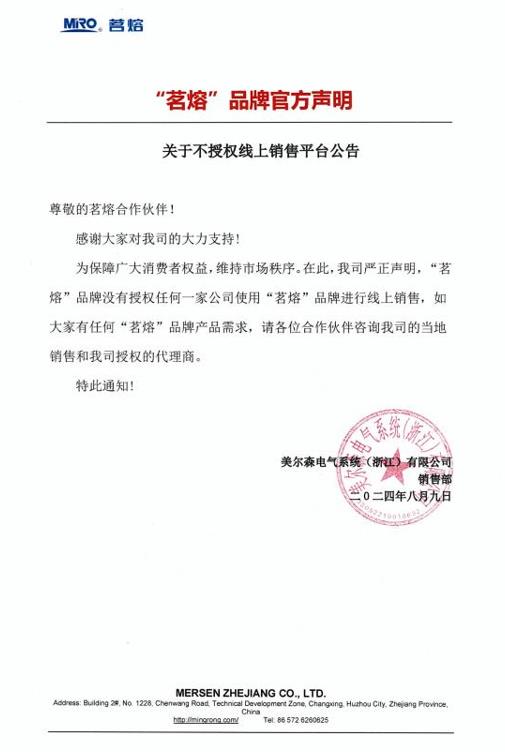 “茗熔”品牌官方聲明|關(guān)于不授權(quán)線上銷售平臺(tái)公告