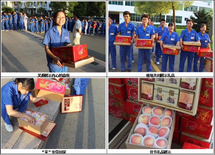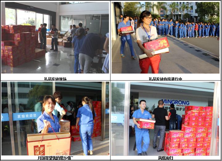 9月19日(農(nóng)歷八月十五)為我國傳統(tǒng)節(jié)日——中秋節(jié)。中秋節(jié)又稱月夕、秋節(jié)、仲秋節(jié)、八月節(jié)、八月會(huì)、追月節(jié)、玩月節(jié)、拜月節(jié)、女兒節(jié)或團(tuán)圓節(jié)。在這個(gè)月圓人團(tuán)圓的美好節(jié)日,我司饋贈(zèng)廣大員工豐富的中秋禮品。9月17日下午,行政樓大廳,發(fā)放禮品有序進(jìn)行中。廣大職員拎著中秋月餅,懷抱一箱蘋果,帶著喜悅滿載而歸。