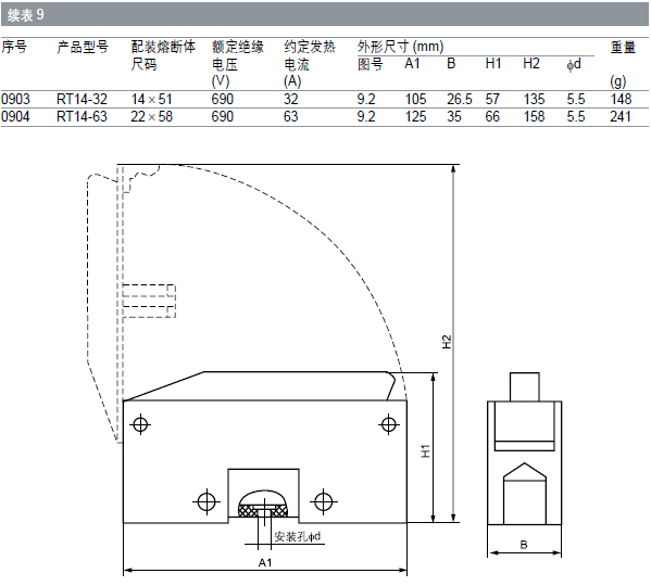 其中RT18N、RT18B 在同一外形尺寸的底座上,可供用戶選擇配置五種不同尺碼的熔斷體;RT18N 有兩路進(jìn)出線,一路配置相