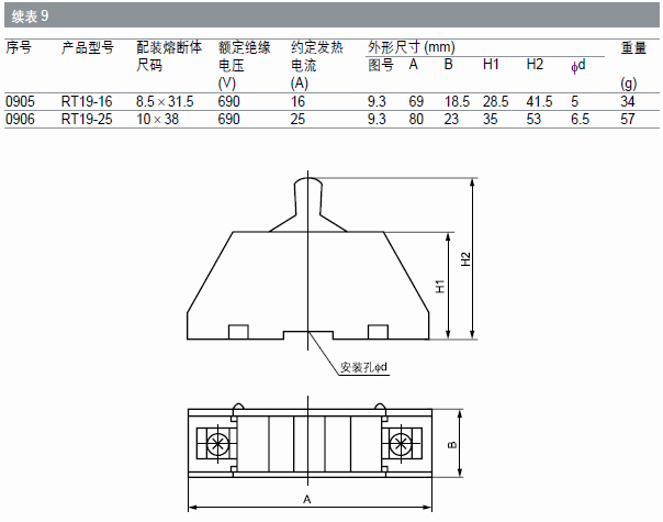 其中RT18N、RT18B 在同一外形尺寸的底座上,可供用戶(hù)選擇配置五種不同尺碼的熔斷體;RT18N 有兩路進(jìn)出線,一路配置相