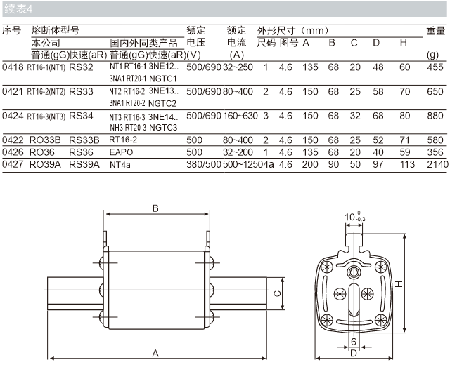 本系列熔斷體適用于交流50Hz、額定電壓至1140V、額定電流至1250A, 主要用在電氣裝置中作線路過載和短路保護(gG/gL) ;還可派生為半導(dǎo)體設(shè)備的短路保護(aR) 以及電動機短路保護(aM)。