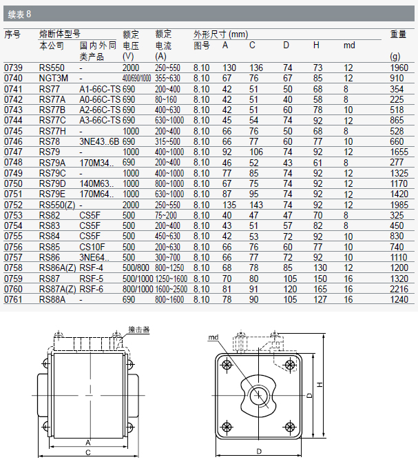 本系列熔斷體額定分斷能力至100kA。