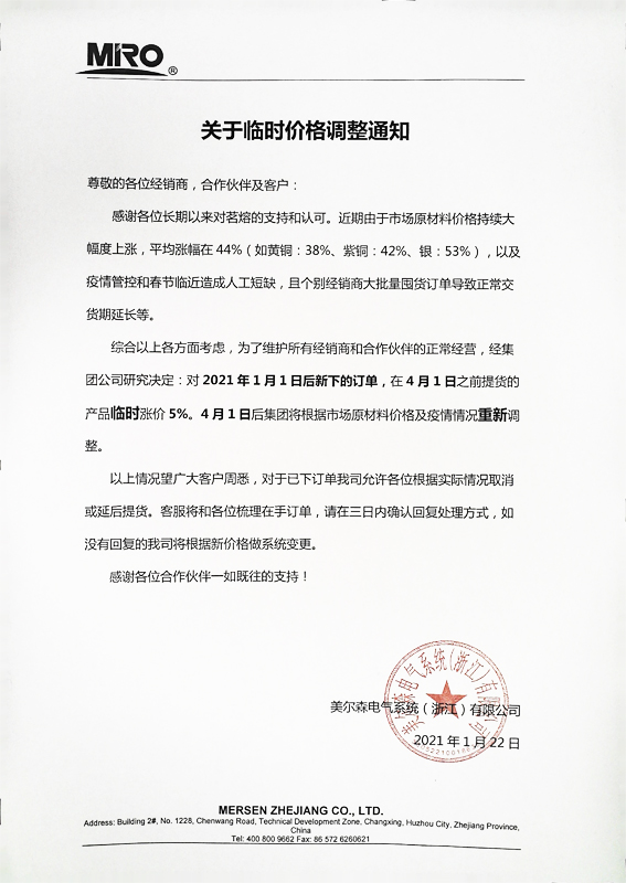關于臨時價格調整通知