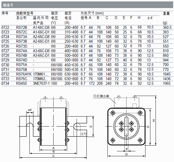 斷時,指示器/ 撞擊器立即動作,顯示熔斷體已熔斷( 指示器)并推動微動開關(guān)( 撞擊器),發(fā)出各種信號或自動切換電路。